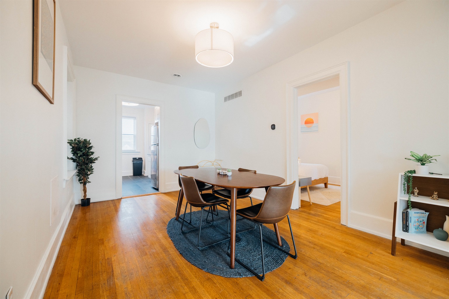 Welcome to your home away from home! This recently updated 2-bedroom, 1-bath apartment blends mid-century style with cozy Boho accents, creating a warm and inviting atmosphere for your stay. Unwind after a day of work or exploring with a movie night on the 65β Roku TVβjust log into your favorite streaming services.