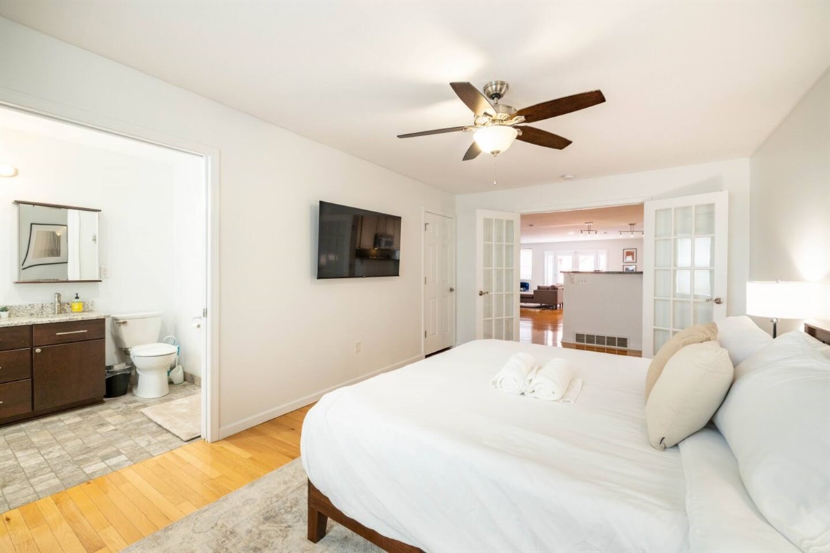 Inside you will find a generous bedroom with king bed, a fully equipped kitchen, sparkling bathrooms, and a spacious living area with access to an inviting outdoor deck. The bedroom has an ensuite with separate shower and jet tub which comes stocked with quality amenities and plenty of soft fluffy towels. An additional half bathroom is down the hall. If you want to stay in, relax and watch one of the smart TVs in the living room or the bedroom by logging in with your streaming services. If you’re looking for a great central place to call home where you can leave the car parked in the private garage and walk to some of Detroit’s best hot spots and top venues, look no further than this stylish, well-appointed apartment for your next trip to the city!