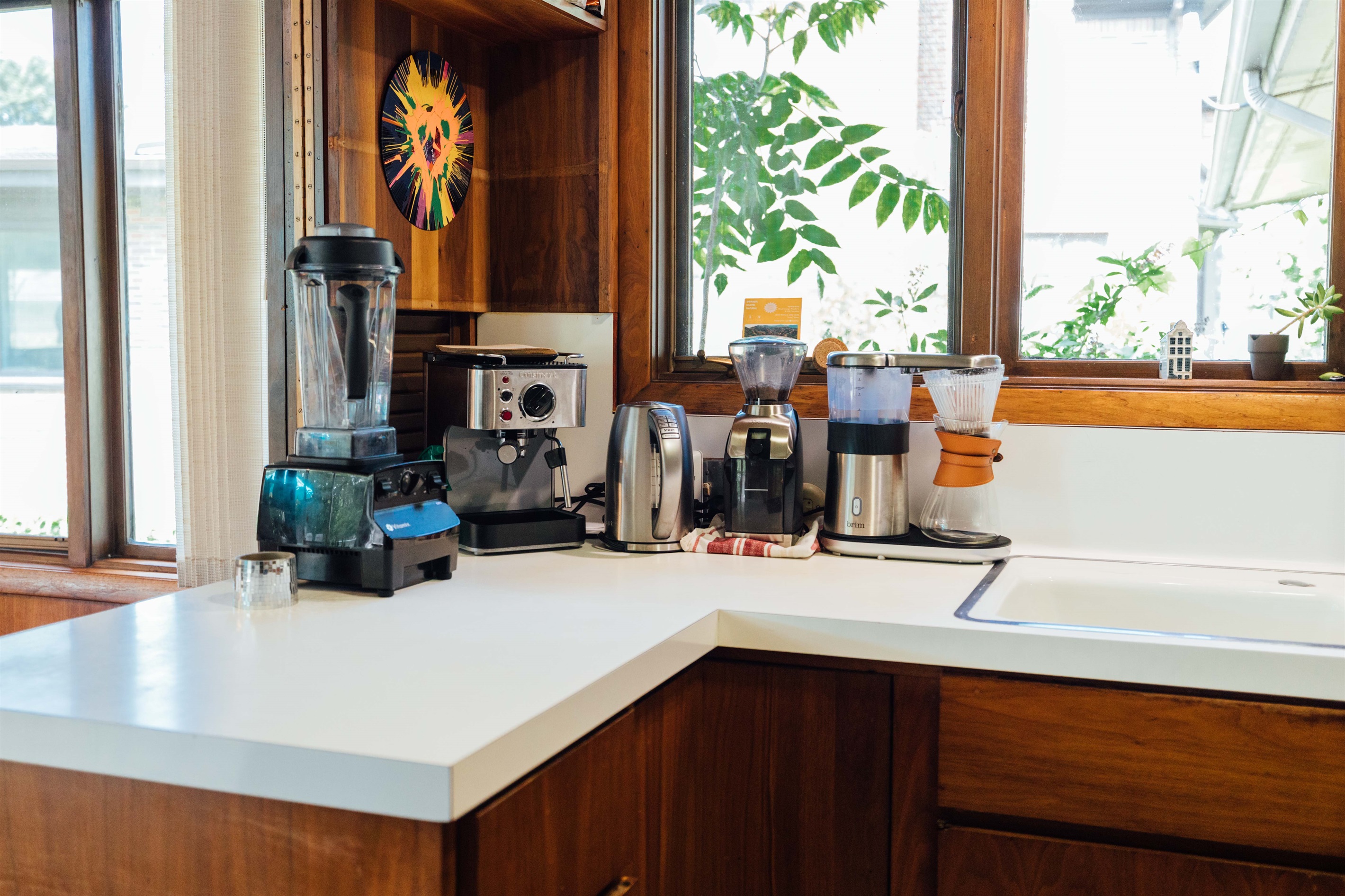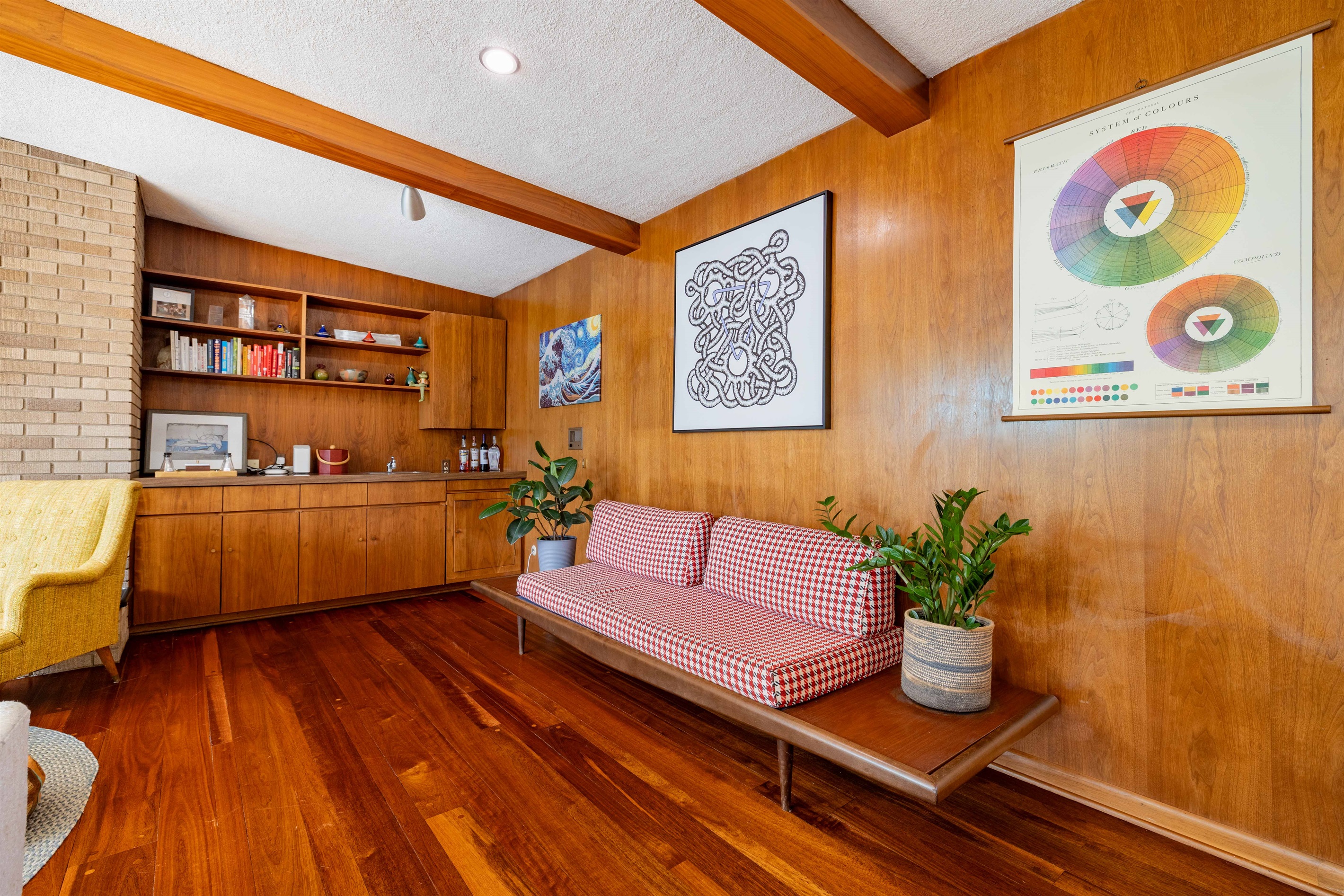 This expansive mid-century home boasts five spacious bedrooms, four full bathrooms, and two half baths, providing ample space for families, groups of friends, or corporate gatherings. Every room is meticulously designed to blend the classic mid-century aesthetic with modern amenities, ensuring a comfortable and stylish stay.